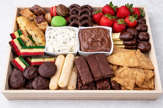 Auricchio provolone, Parmigiano Reggiano, rolled Prosciutto di Parma, hot and sweet dry sausage, rolled mortadella, soppressata, bocconcini, marinated artichokes, marinated mushrooms, roasted peppers, and olives.