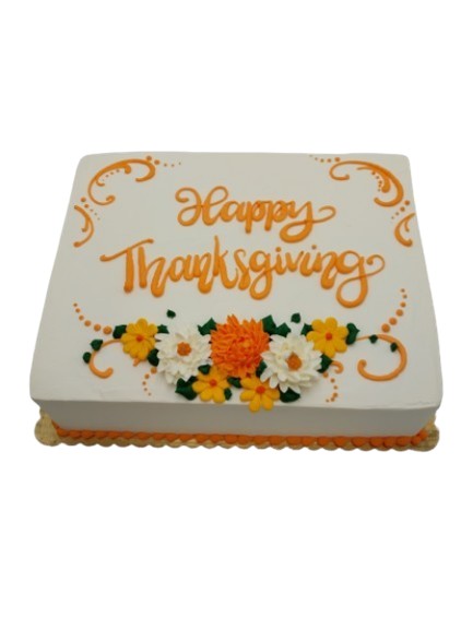 <p>Celebrate the season of thanks with our Fall Blossom Thanksgiving Cake. Adorned with gorgeous buttercream flowers in warm autumn colors and a heartfelt "Happy Thanksgiving" making it the perfect centerpiece for your holiday gatherings.</p>